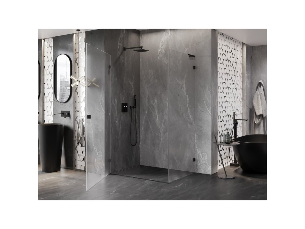 Specifikace produktu: Rozměr: 100x90 cm (levé dveře 100 cm, stěna 90 cm) Výška: 200 cm Strana montáže: Levá Vchod: Dveře s výklopnými křídly Barva skla: Průhledná Povrchová úprava: Černá Profil: Hliník Úhlový stabilizátor L: Nerezová ocel Typ skla: Tvrzené Tloušťka skla: dveře 6 mm, stěna 8 mm Povlak pro snadné čištění Možnost nastavení šířky Dva montážní systémy: - S profilem, který umožňuje vyrovnání nerovností stěn - Bez profilu v případě dokonale rovných stěn Možnost montáže na sprchovou vaničku nebo obklady Mechanismus pro zvedání a spouštění dveří Mosazné svorky v jedné rovině se skleněnou tabulí Magnetický proužek a elastomerové těsnění pro odvod vody Hliníkový práh těsnění dveříDoplňkové parametry