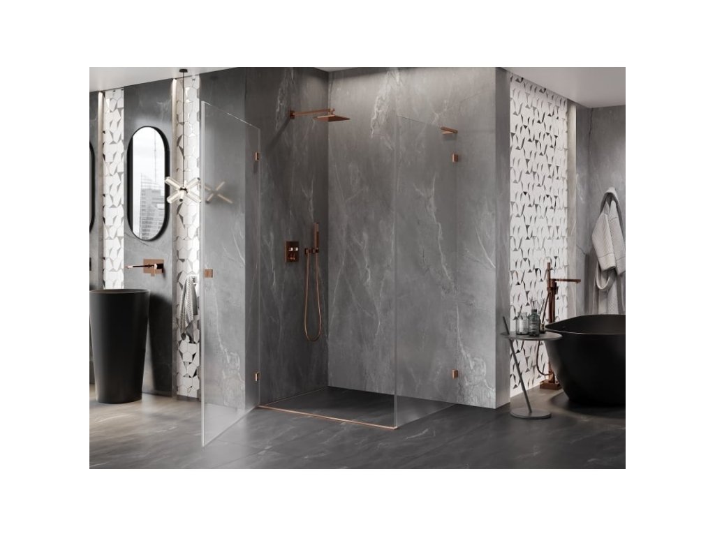 MEXEN/S - Lunar-B L sprchový kout dveře křídlové levá 75 x 70, transparent, měď kartáčovaná 832L-075-070-65-00-L