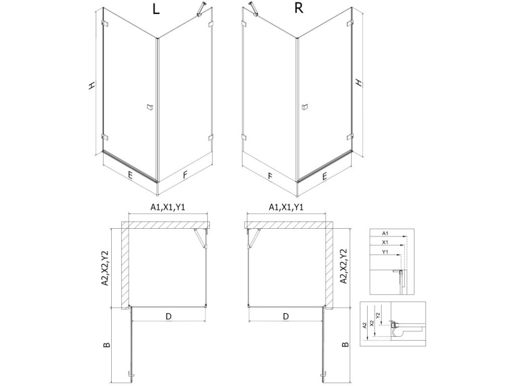 Specifikace produktu:Rozměr: 90x80 cm (levé dveře 90 cm, stěna 80 cm)