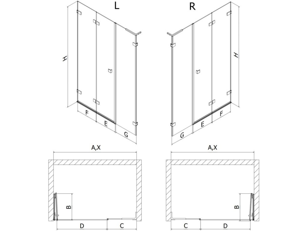 Tloušťka skla: dveře 6 mm, stěna 8 mm