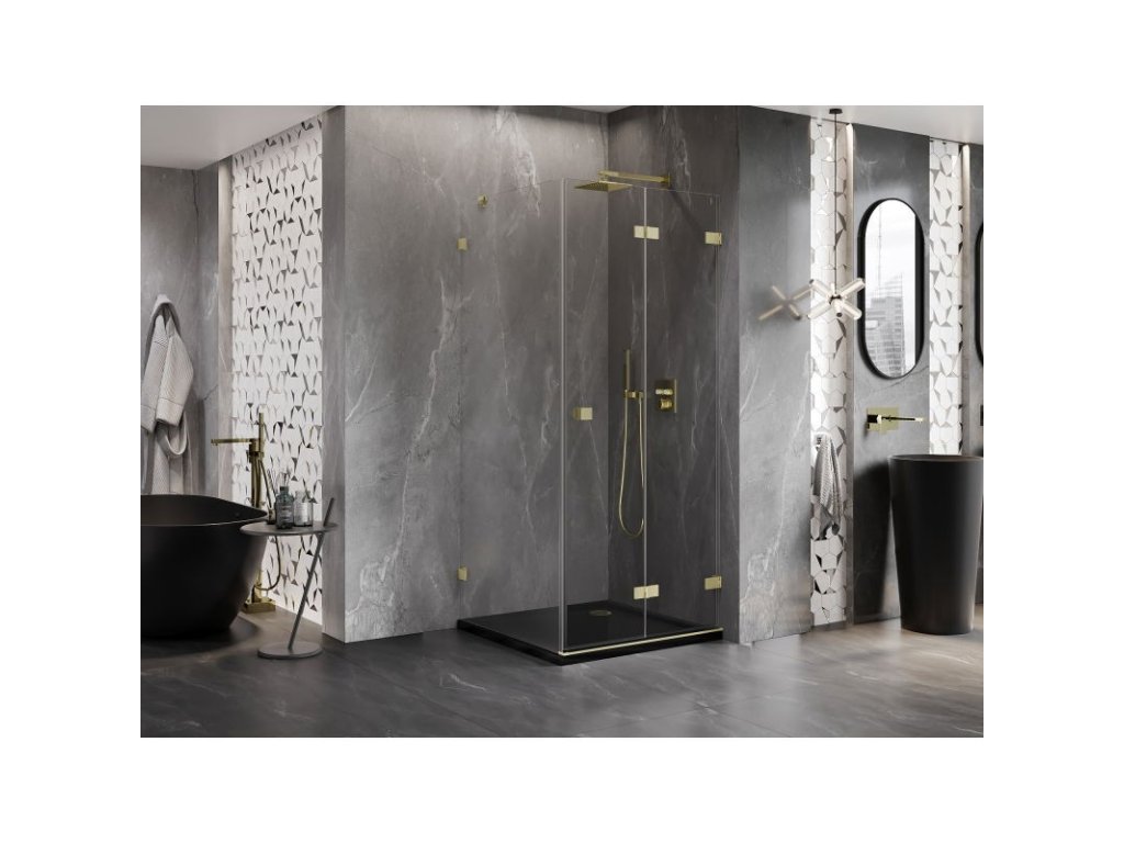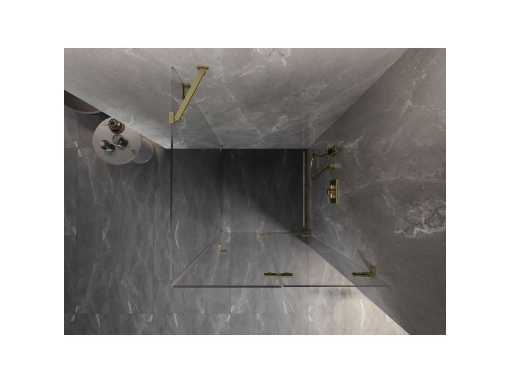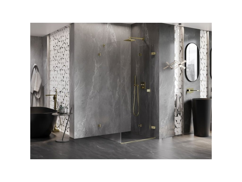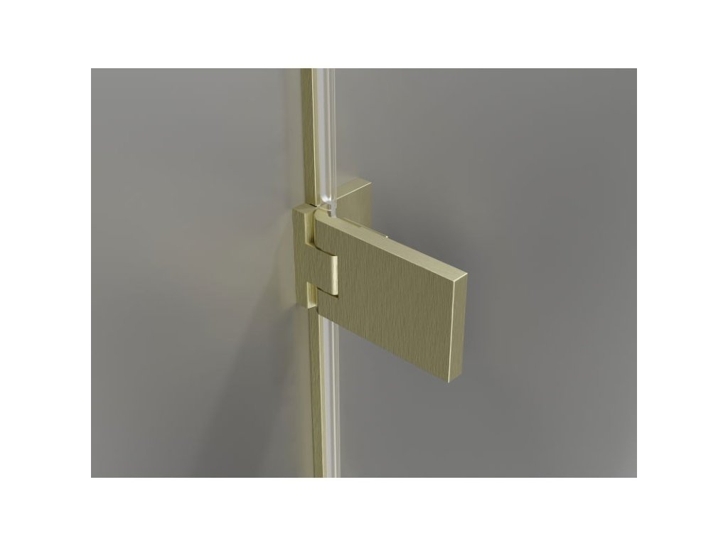 Specifikace produktu: Rozměr: 90x90 cm (pravé dveře 90 cm, stěna 90 cm) Výška: 200 cm Strana montáže: Pravá Vchod: Skládací dveře Barva skla: Průhledná Povrchová úprava: Kartáčované zlato Profil: Hliník Nosná konstrukce: Nerezová ocel Typ skla: Tvrzené Tloušťka skla: dveře 6 mm, stěna 8 mm Povlak pro snadné čištění Možnost nastavení šířky Dva montážní systémy: - S profilem, který umožňuje vyrovnání nerovností stěny - Bez profilu v případě dokonale rovných stěn Možnost montáže na sprchovou vaničku nebo obklady Mosazné svorky a panty v jedné rovině se skleněnou tabulí Magnetický proužek a elastomerové těsnění pro odvod vody Hliníkový práh těsnění dveříDoplňkové parametry