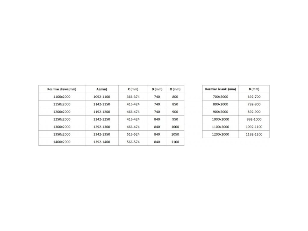 Specifikace produktu:Rozměr: 130x100 cm (levé dveře 130 cm, stěna 100 cm)