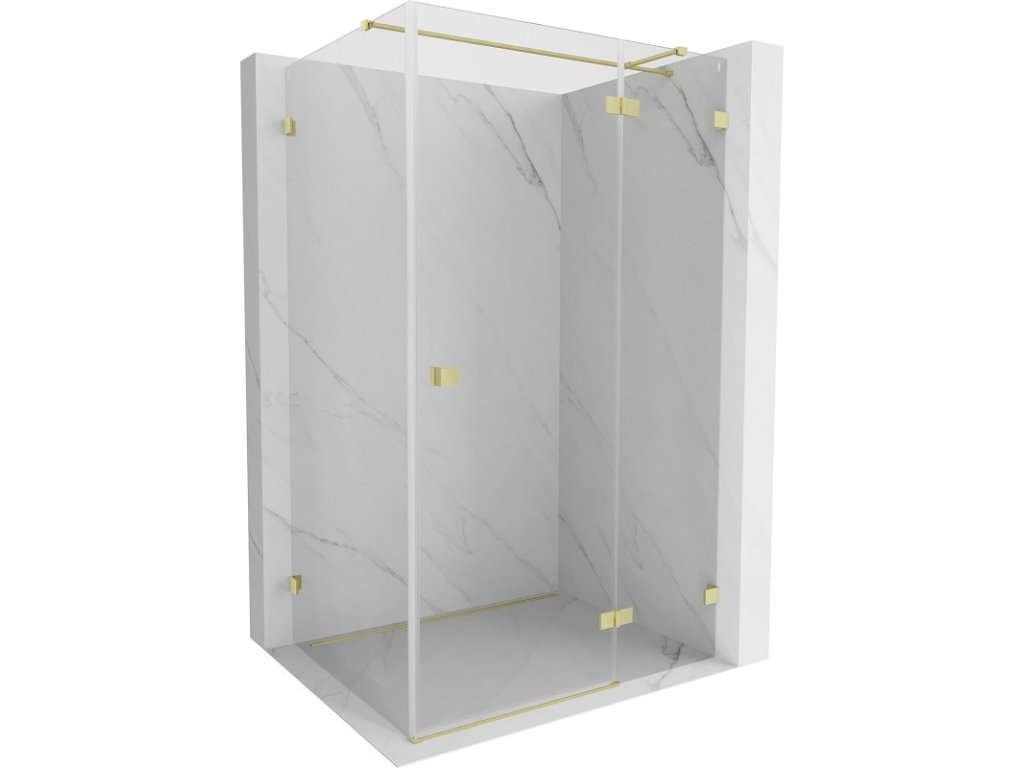MEXEN/S - Lunar T sprchový kout dveře křídlové pravá 140 x 80, transparent, zlato kartáčovaná 834T-140-080-55-00-P