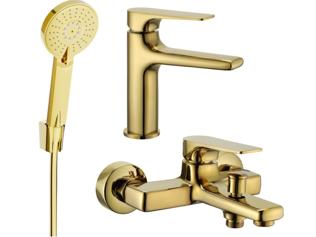 MEXEN/S - Lynx R40 Set umyvadlové a vanové baterie s příslušenstvím, zlato 745903R40-50