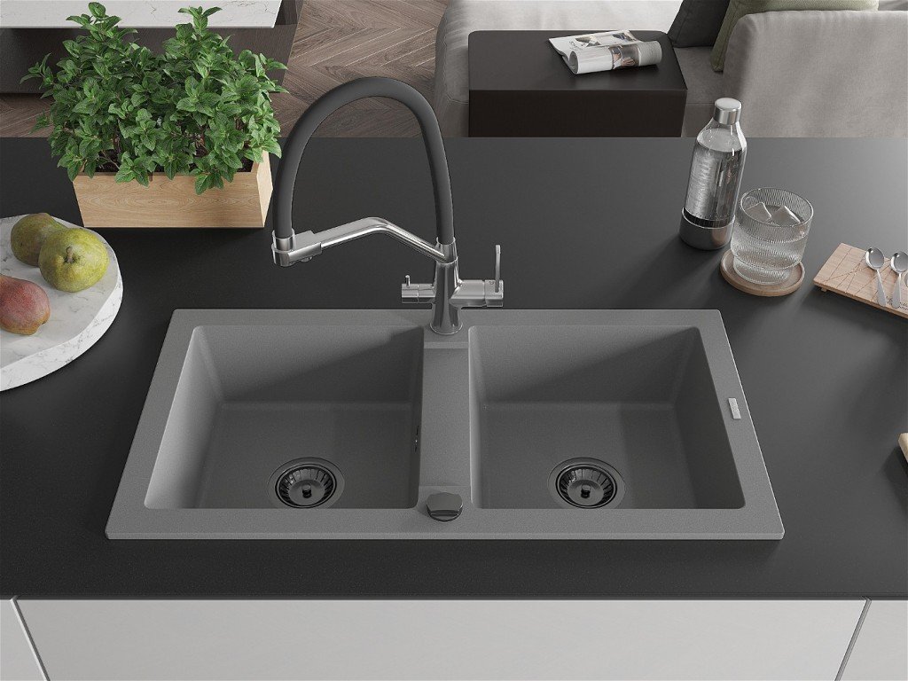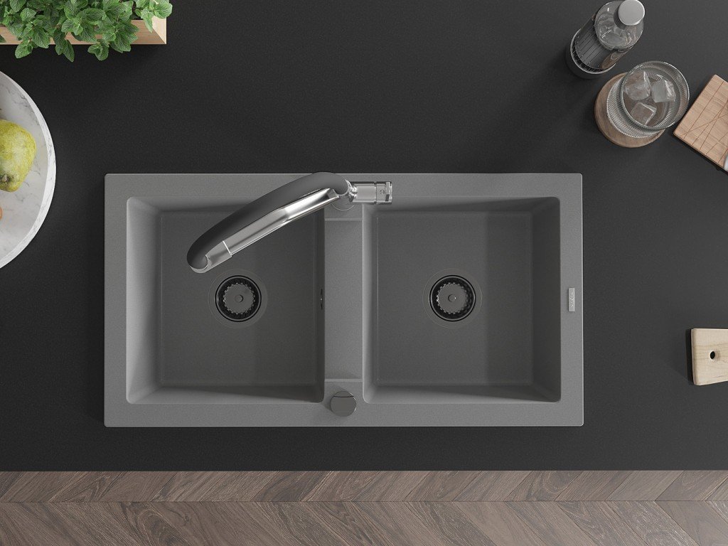 MEXEN/S - Mario granitový dřez 2-bowly včetně baterie Duo, šedá 6504-71-671701-07-B