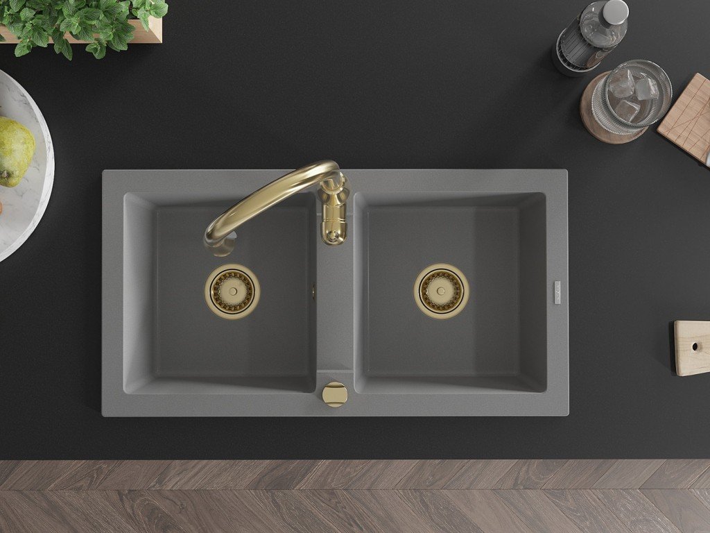 MEXEN/S - Mario granitový dřez 2-bowly včetně baterie Savita, šedá 6504-71-672601-50