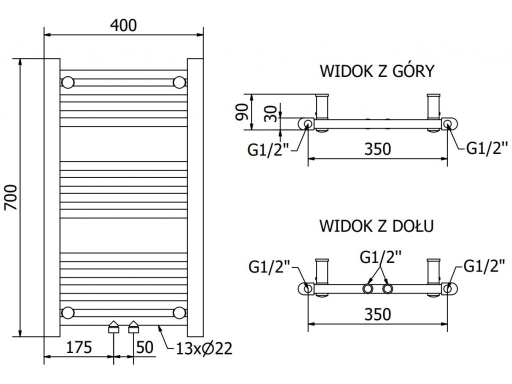 MEXEN/S - Mars radiátor + topná tyč 700 x 400 mm, 300 W, chrom W110-0700-400-2300-01