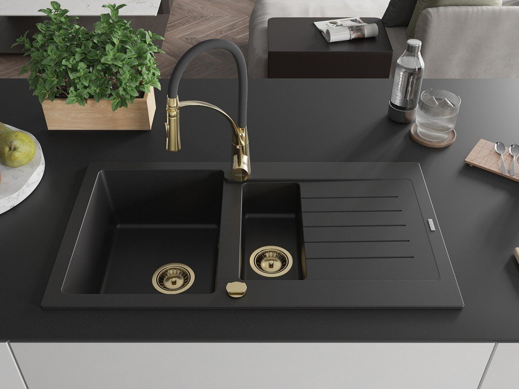 MEXEN/S - Matias granitový dřez 1.5 s odkapávačem včetně baterie Aster, černá 6502-77-73450-57-G