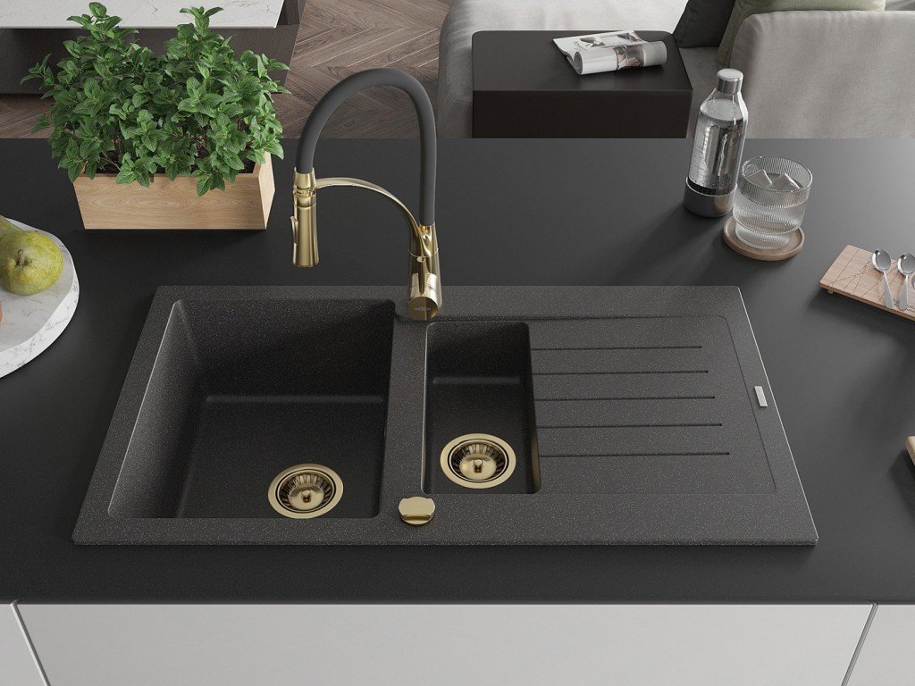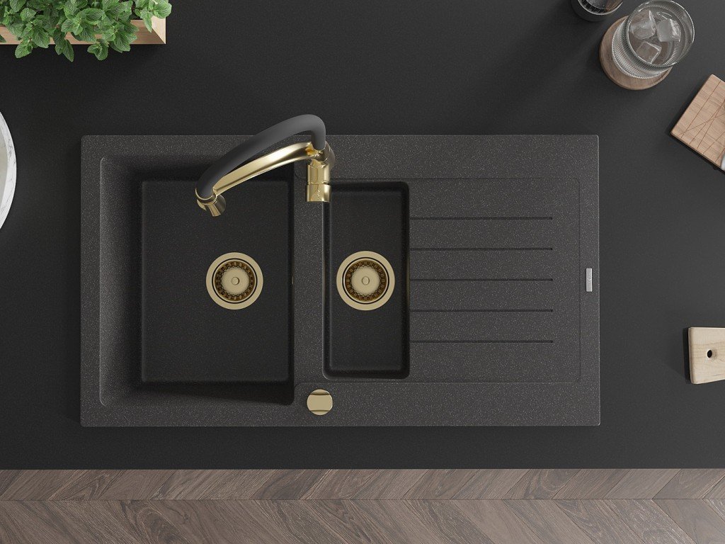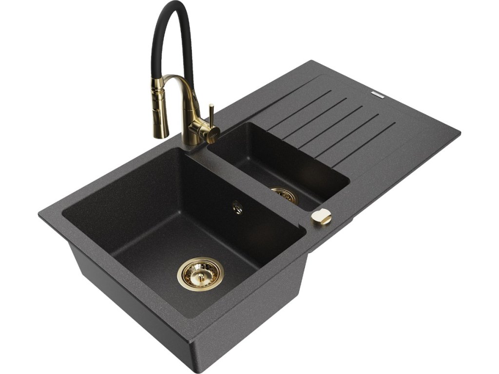 MEXEN/S - Matias granitový dřez 1.5 s odkapávačem včetně baterie Aster, černá kropenatá 6502-76-73450-57-G