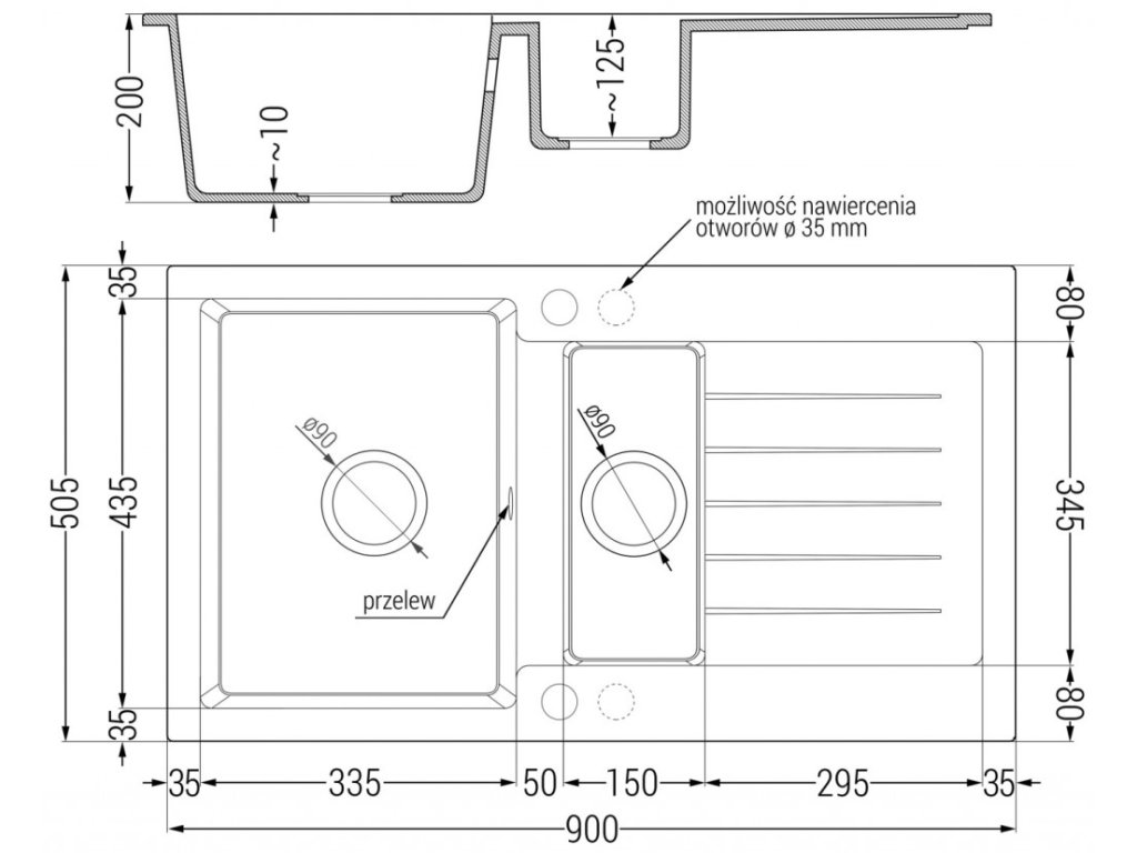 Dva dodatečné vyfrézované otvory pro samoděrování ø35