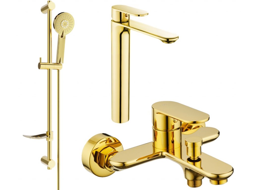 MEXEN/S - Milo DF40 Set umyvadlové a vanové baterie s příslušenstvím, zlato 71313DF40-50