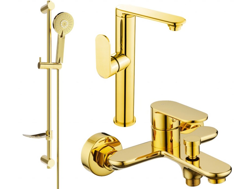 MEXEN/S - Milo DF40 Set umyvadlové a vanové baterie s příslušenstvím, zlato 713153DF40-50