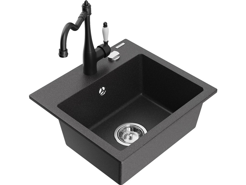 MEXEN/S - Milo granitový dřez 1-miska včetně baterie Carla, černá kropenatá 6505-76-670700-70