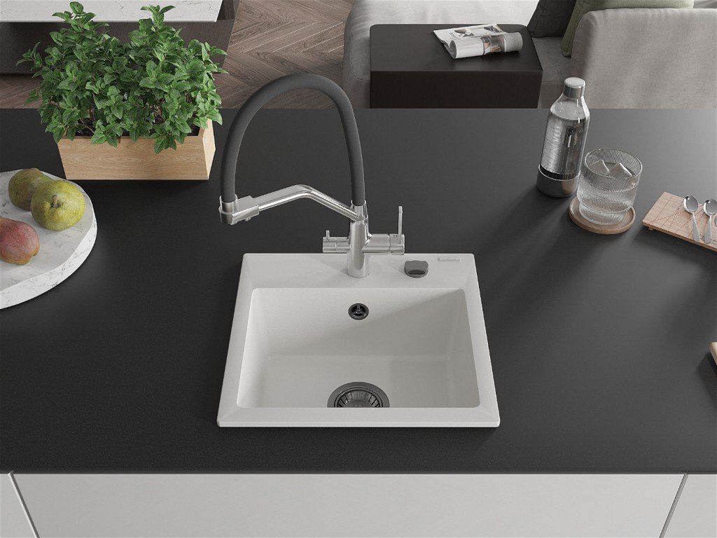 Kuchyňský granitový dřez odolný vůdči poškrábání, teplotním šokům a nárazům. Směs přírodní pryskyřice a hustého granitu.