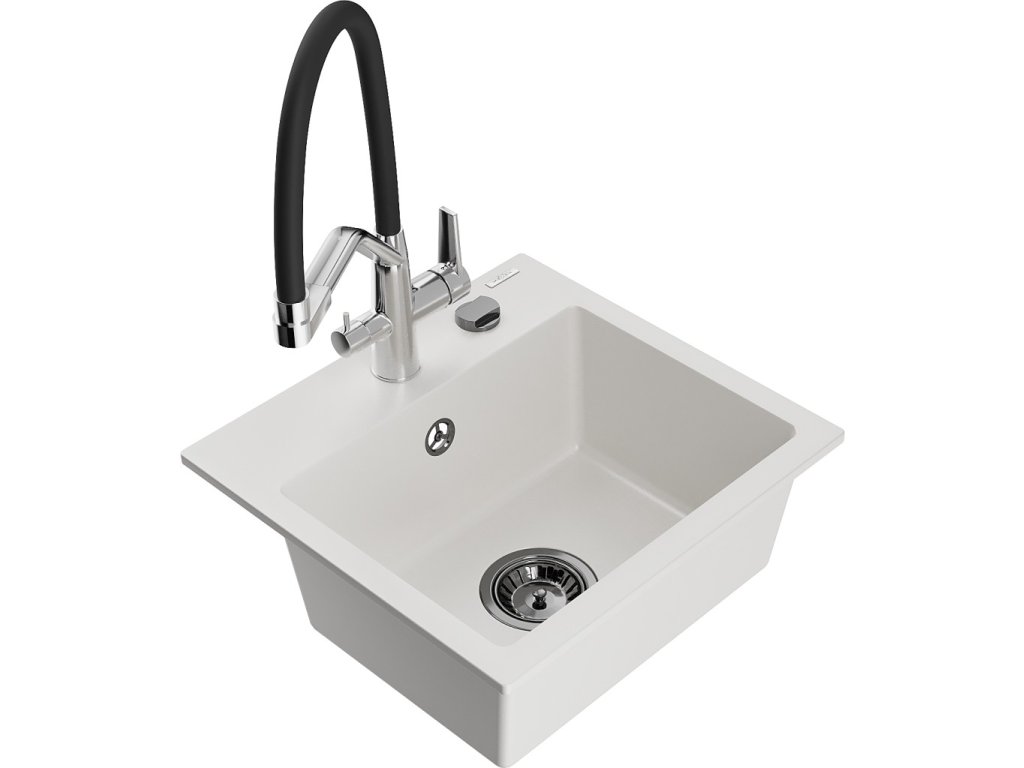 MEXEN/S - Milo granitový dřez 1-miska včetně baterie Duo, bílá 6505-20-671701-07-B