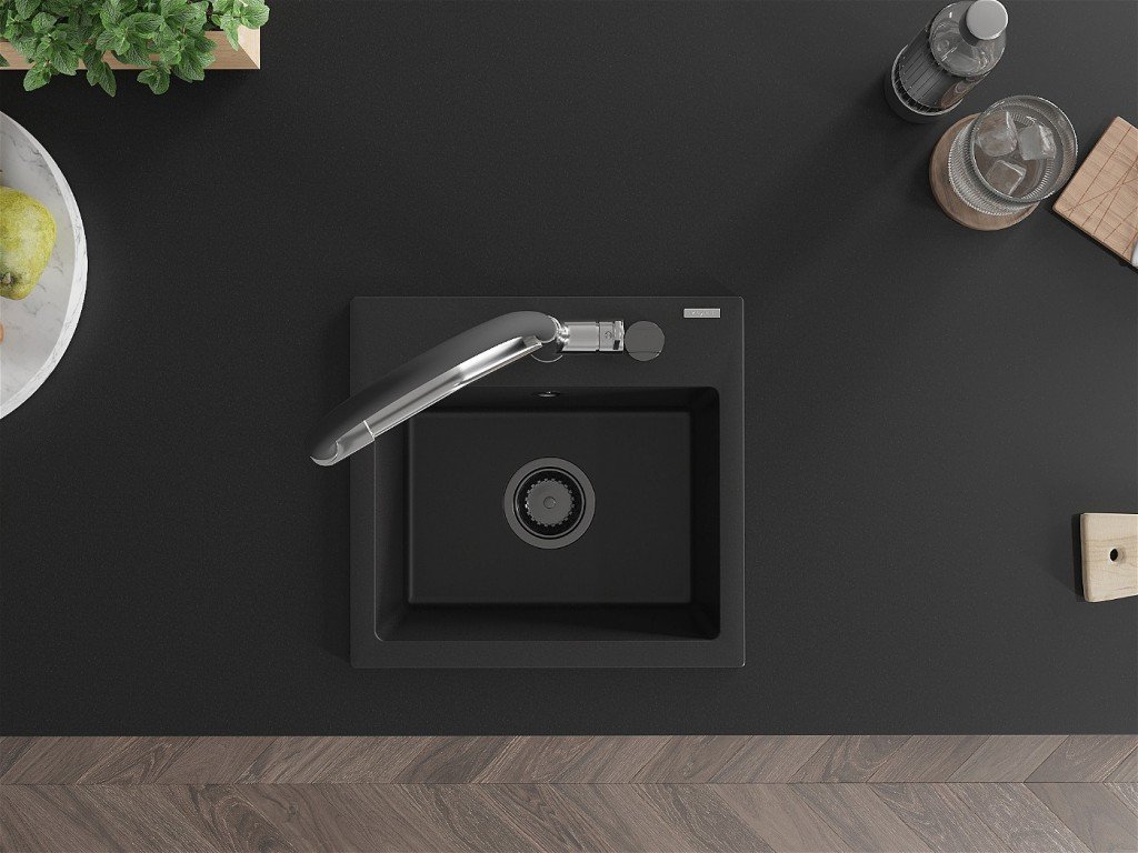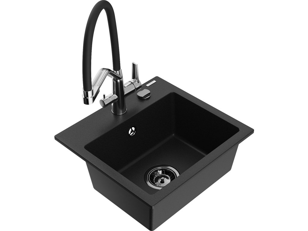 MEXEN/S - Milo granitový dřez 1-miska včetně baterie Duo, černá 6505-77-671701-07-B