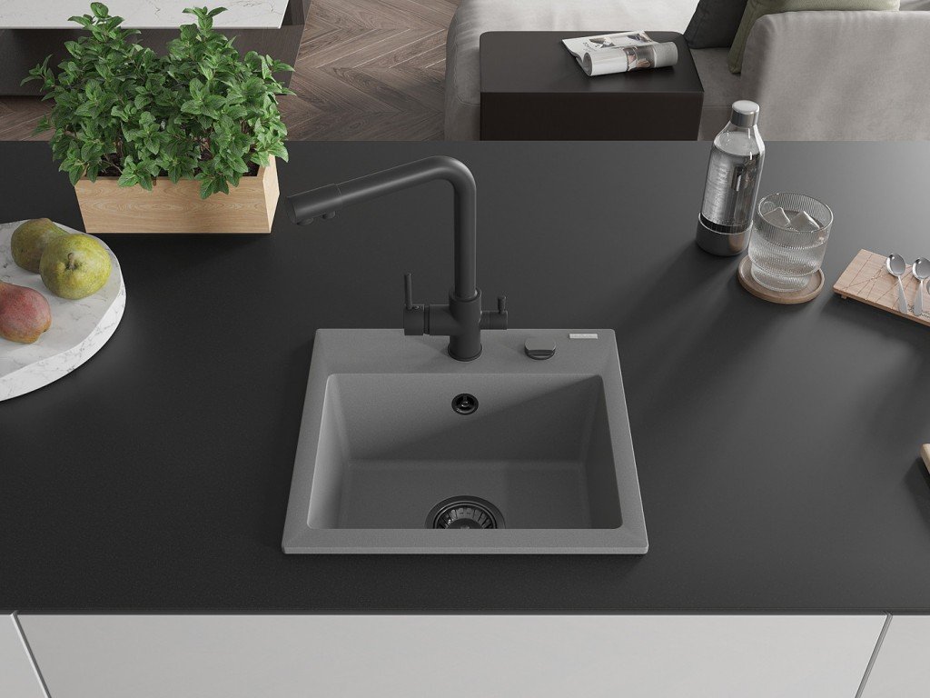 Kuchyňský granitový dřez odolný vůdči poškrábání, teplotním šokům a nárazům. Směs přírodní pryskyřice a hustého granitu.