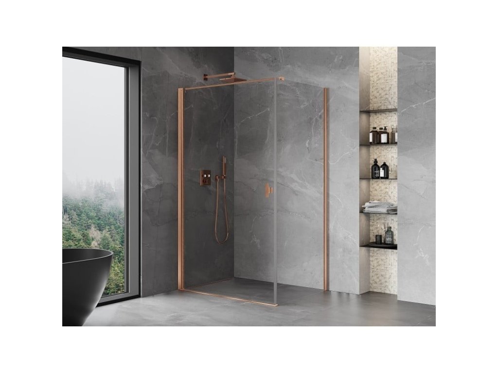 Specifikace produktu: Rozměr: 100x80 cm (dveře 100 cm, stěna 80 cm) Výška: 200 cm Strana montáže: Univerzální Vchod: Dveře s otočnými panty Barva skla: Průhledná Povrchová úprava: Kartáčovaná měď Profil: Hliník Konzola: Nerezová ocel Max. délka konzoly: 150 cm Konzolu lze řezat Typ skla: Tvrzené Tloušťka skla: 6 mm Povrchová úprava pro snadné čištění Nastavitelná šířka Možnost montáže na sprchovou vaničku nebo dlaždice Mechanismus zvedání a spouštění dveří Magnetický proužek a elastomerové těsnění pro odtok vody Hliníkový práh těsnění dveříDoplňkové parametry
