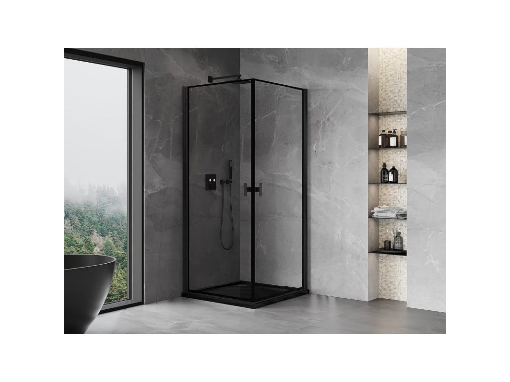 MEXEN/S - Mist-B Duo sprchový kout dveře křídlové 100 x 100, černá okraj, černá 8A2-100L-100P-70-70