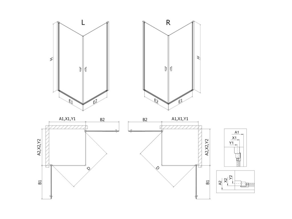 Specifikace produktu: Rozměr: 100x100 cm Výška: 200 cm Strana montáže: Univerzální Vchod: Dveře s výklopnými křídly Barva skla: Průhledná Povrchová úprava: Černá Profil: Hliník Typ skla: Tvrzené Tloušťka skla: 6 mm Povrchová úprava pro snadné čištění Nastavitelná šířka Možnost montáže na sprchovou vaničku nebo dlaždice Mechanismus zvedání a spouštění dveří Magnetický proužek a elastomerové těsnění pro odtok vody Hliníkový práh těsnění dveříDoplňkové parametry