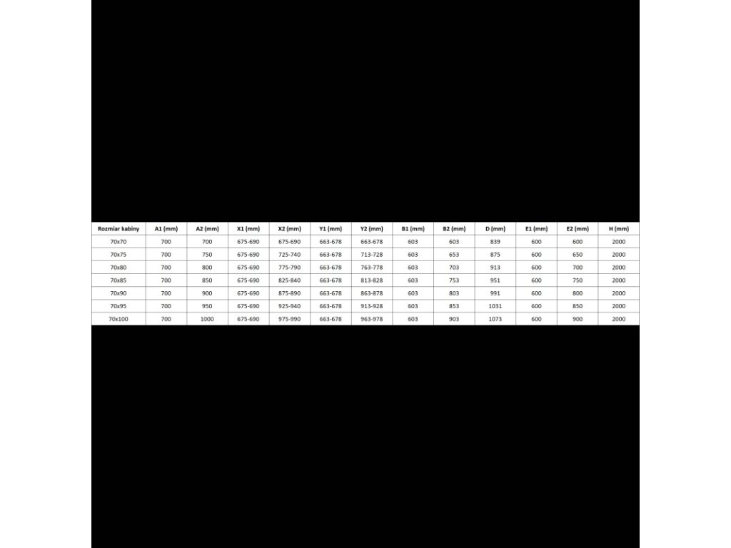 Specifikace produktu: Rozměr: 70x70 cm Výška: 200 cm Strana montáže: Univerzální Vchod: Dveře s výklopnými křídly Barva skla: Průhledná Povrchová úprava: Černá Profil: Hliník Typ skla: Tvrzené Tloušťka skla: 6 mm Povrchová úprava pro snadné čištění Nastavitelná šířka Možnost montáže na sprchovou vaničku nebo dlaždice Mechanismus zvedání a spouštění dveří Magnetický proužek a elastomerové těsnění pro odtok vody Hliníkový práh těsnění dveříDoplňkové parametry