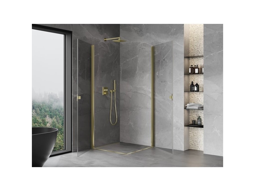 Specifikace produktu: Rozměr: 70x70 cm Výška: 200 cm Strana montáže: Univerzální Vchod: Dveře s výklopnými křídly Barva skla: Průhledná Povrchová úprava: Zlatá Profil: Hliník Typ skla: Tvrzené Tloušťka skla: 6 mm Povrchová úprava pro snadné čištění Nastavitelná šířka Možnost montáže na sprchovou vaničku nebo dlaždice Mechanismus zvedání a spouštění dveří Magnetický proužek a elastomerové těsnění pro odtok vody Hliníkový práh těsnění dveříDoplňkové parametry