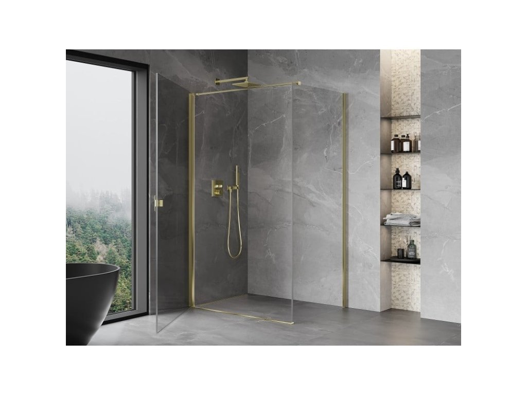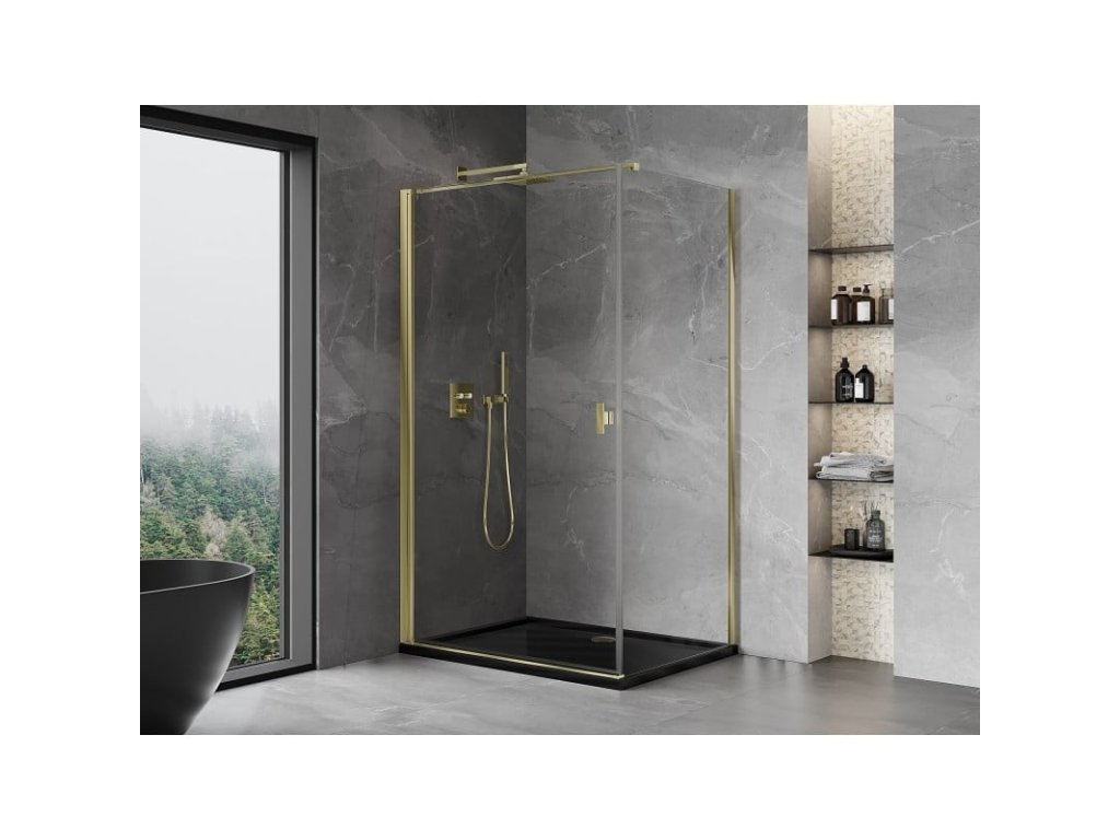 Specifikace produktu: Rozměr: 100x110 cm (dveře 100 cm, stěna 110 cm) Výška: 200 cm Strana montáže: Univerzální Vchod: Dveře s otočnými panty Barva skla: Průhledná Povrchová úprava: Zlatá Profil: Hliník Konzola: Nerezová ocel Max. délka konzoly: 150 cm Konzolu lze řezat Typ skla: Tvrzené Tloušťka skla: 6 mm Povrchová úprava pro snadné čištění Nastavitelná šířka Možnost montáže na sprchovou vaničku nebo dlaždice Mechanismus zvedání a spouštění dveří Magnetický proužek a elastomerové těsnění pro odtok vody Hliníkový práh těsnění dveříDoplňkové parametry