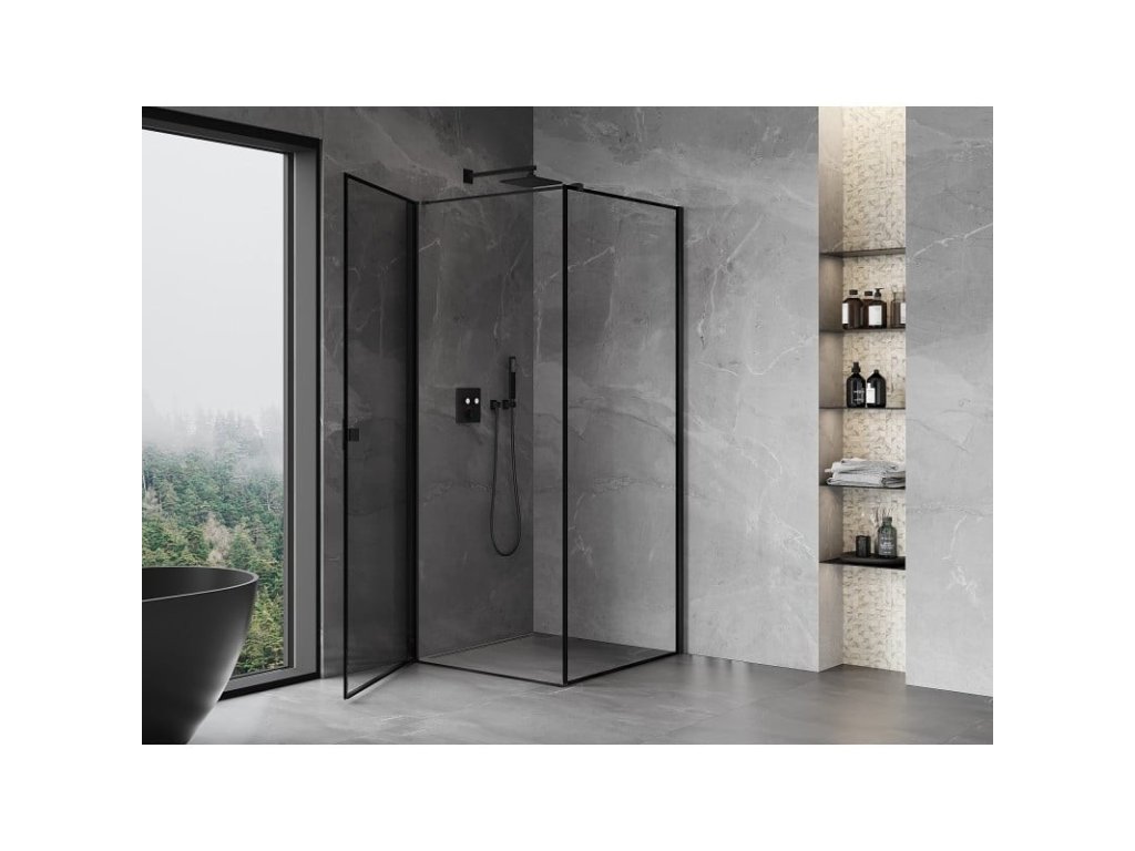 Specifikace produktu: Rozměr: 90x90 cm (levé dveře 90 cm, stěna 90 cm) Výška: 200 cm Strana montáže: Levá Vchod: Dveře s otočnými panty Barva skla: Černý rám Povrchová úprava: Černá Profil: Hliník Konzola: Nerezová ocel Max. délka konzoly: 150 cm Konzolu lze řezat Typ skla: Tvrzené Tloušťka skla: 6 mm Povrchová úprava pro snadné čištění Nastavitelná šířka Možnost montáže na sprchovou vaničku nebo dlaždice Mechanismus zvedání a spouštění dveří Magnetický proužek a elastomerové těsnění pro odtok vody Hliníkový práh těsnění dveříDoplňkové parametry
