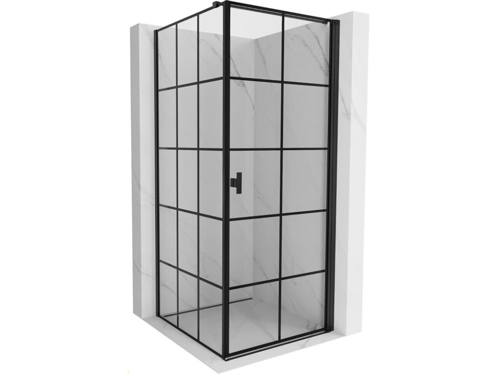 Specifikace produktu: Rozměr: 90x90 cm (pravé dveře 90 cm, stěna 90 cm) Výška: 200 cm Strana montáže: Pravá Vchod: Dveře s otočnými panty Barva skla: Černá mřížka Povrchová úprava: Černá Profil: Hliník Konzola: Nerezová ocel Max. délka konzoly: 150 cm Konzolu lze řezat Typ skla: Tvrzené Tloušťka skla: 6 mm Povrchová úprava pro snadné čištění Nastavitelná šířka Možnost montáže na sprchovou vaničku nebo dlaždice Mechanismus zvedání a spouštění dveří Magnetický proužek a elastomerové těsnění pro odtok vody Hliníkový práh těsnění dveříDoplňkové parametry