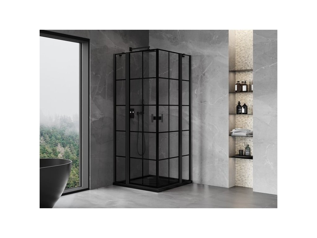 MEXEN/S - Mist Duo sprchový kout dveře křídlové 80 x 80, černá dekor, černá 8A4-080L-080P-70-77