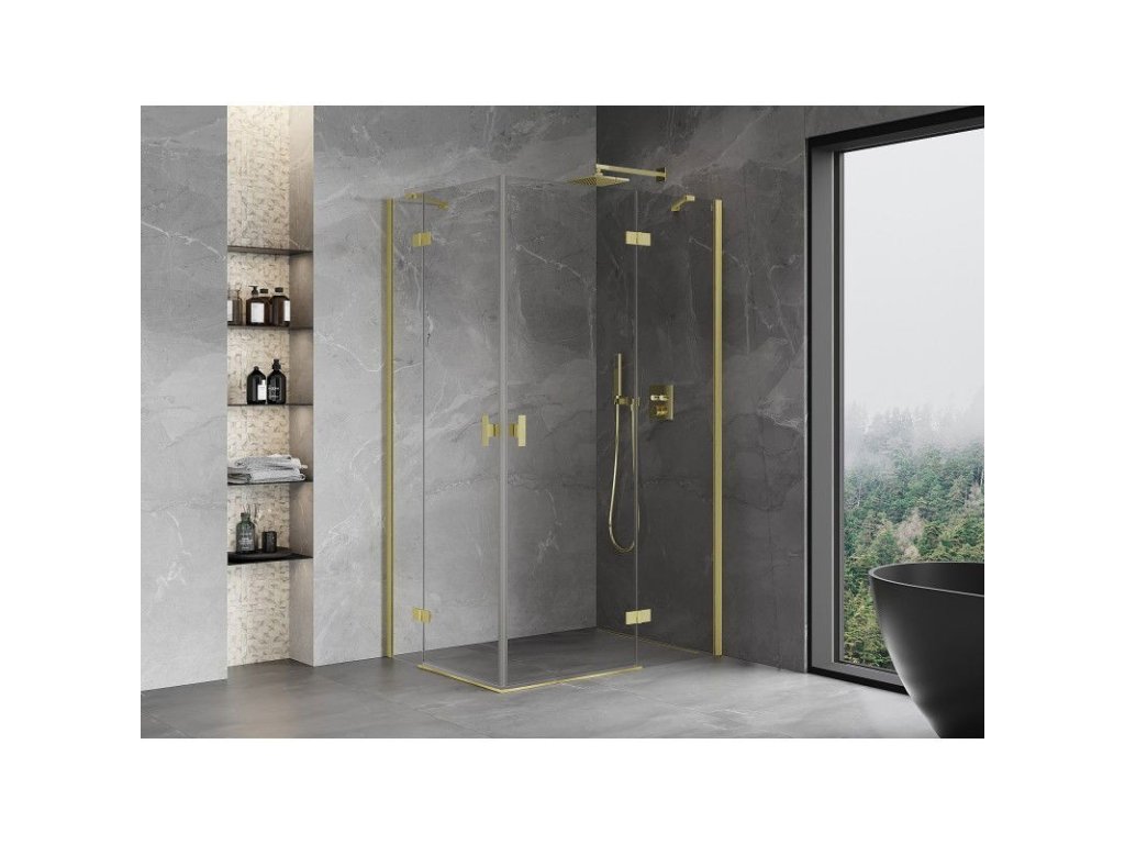 MEXEN/S - Mist H Duo sprchový kout dveře křídlové 75 x 80, transparent, zlato kartáčovaná 8A5-075L-080P-55-00