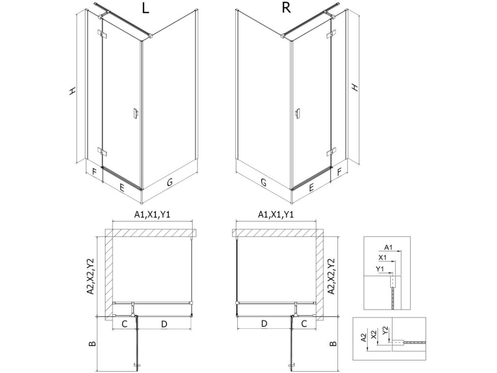 Specifikace produktu:Rozměr: 85x85 cm (levé dveře 85 cm, stěna 85 cm)