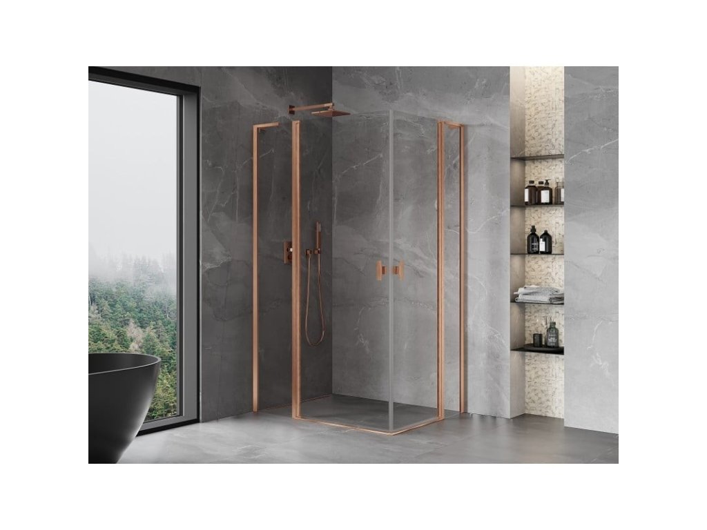MEXEN/S - Mist L Duo sprchový kout dveře křídlové 110 x 100, transparent, měď kartáčovaná 8A4L-110-100-65-00