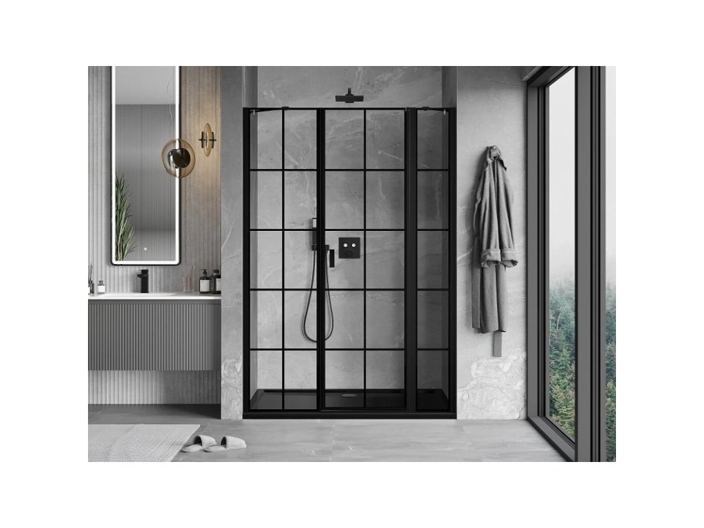 MEXEN/S - Mist sprchové dveře křídlové pravé 145, černá dekor, černá 8A4-145-001-70-77-P