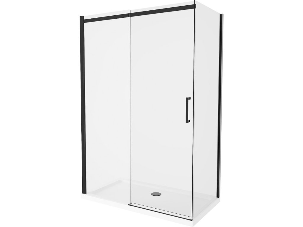 MEXEN/S - Omega sprchový kout 140x80, transparent, černá + bílá vanička se sifonem 825-140-080-70-00-4010B