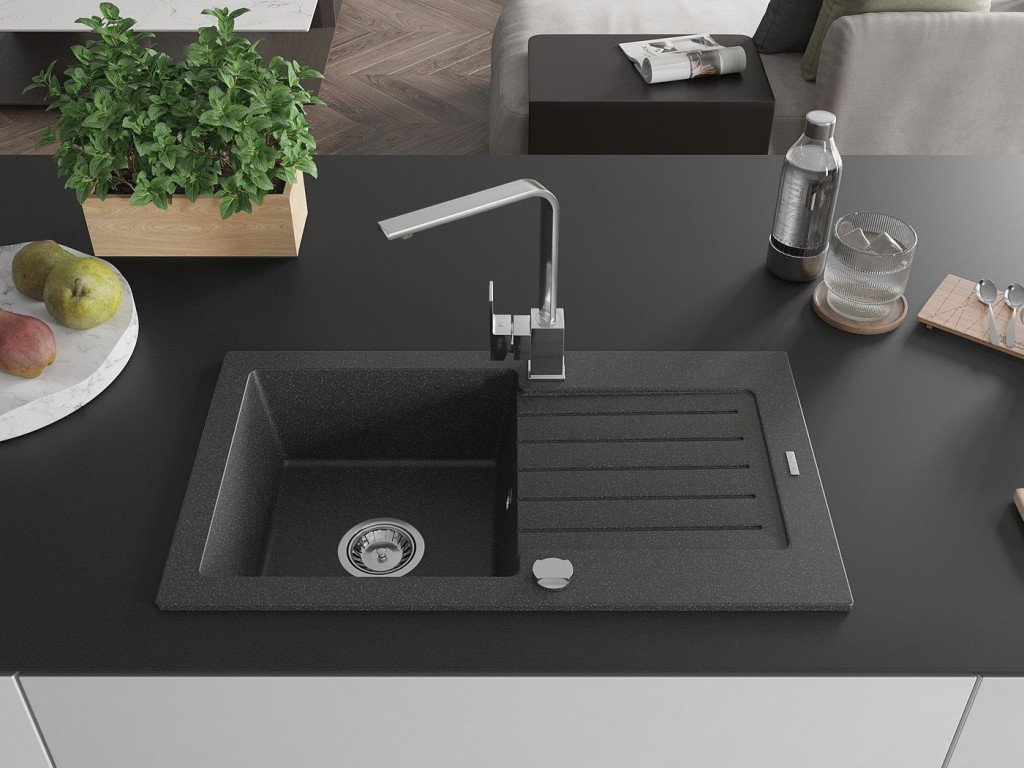 MEXEN/S - Pablo granitový dřez 1-miska s odkapávačem včetně baterie Rita, černý kropenatý 6510-76-670300-00