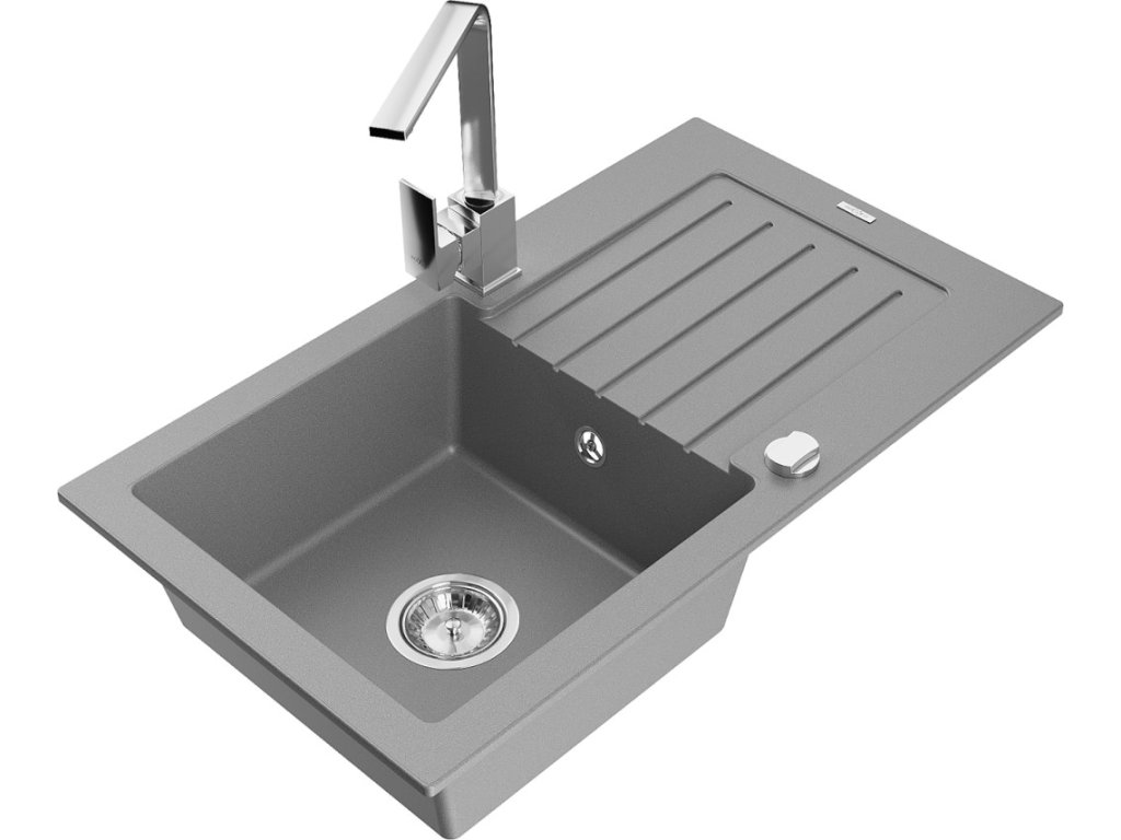 MEXEN/S - Pablo granitový dřez 1-miska s odkapávačem včetně baterie Rita, šedý 6510-71-670300-00