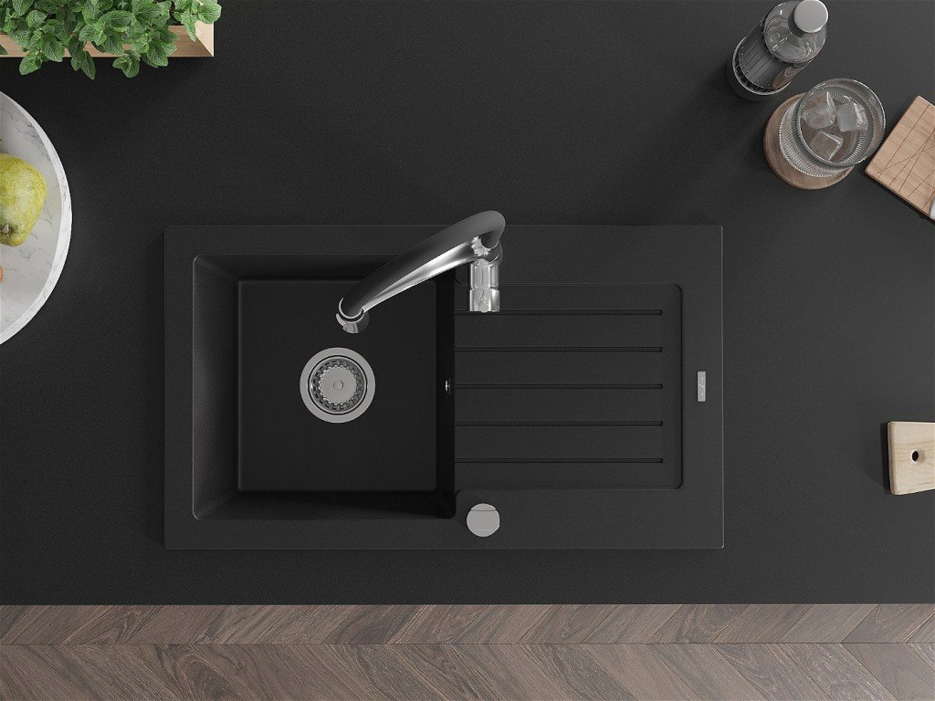 MEXEN/S - Pablo granitový dřez 1 s odkapávačem včetně baterie Flora, černá - ideální volba pro moderní kuchyně! Tento kvalitní granitový dřez od značky MEXEN/S bude skvělým...