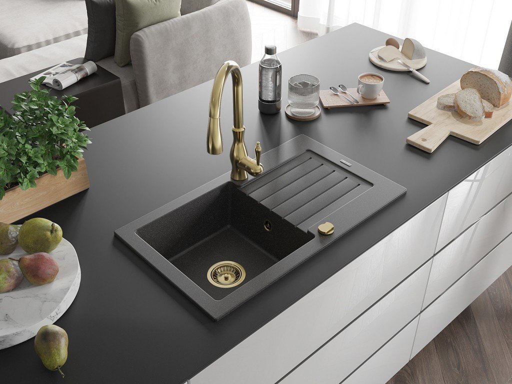 MEXEN/S - Pablo granitový dřez 1 s odkapávačem včetně baterie Savita, černá kropenatá 6510-76-672601-50