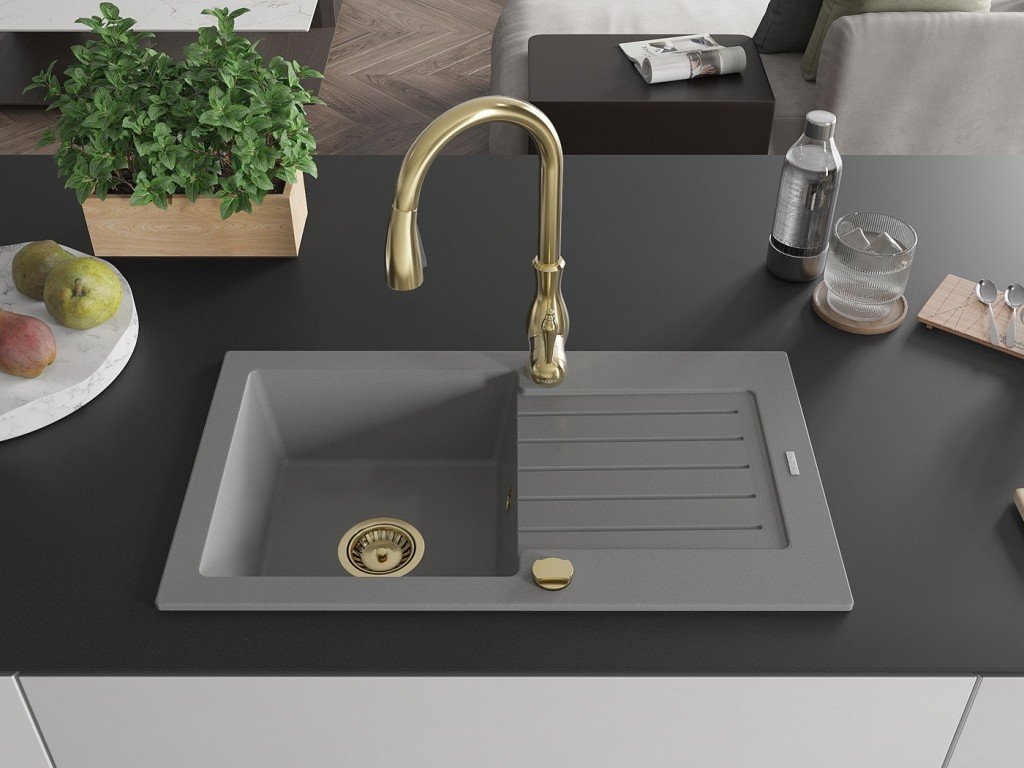 Kuchyňský granitový dřez odolný vůdči poškrábání, teplotním šokům a nárazům. Směs přírodní pryskyřice a hustého granitu.