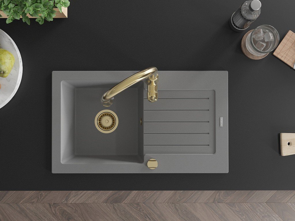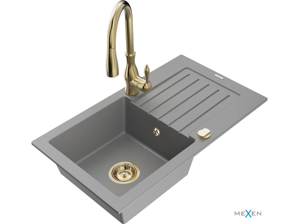 MEXEN/S - Pablo granitový dřez 1 s odkapávačem včetně baterie Savita, šedá 6510-71-672601-50
