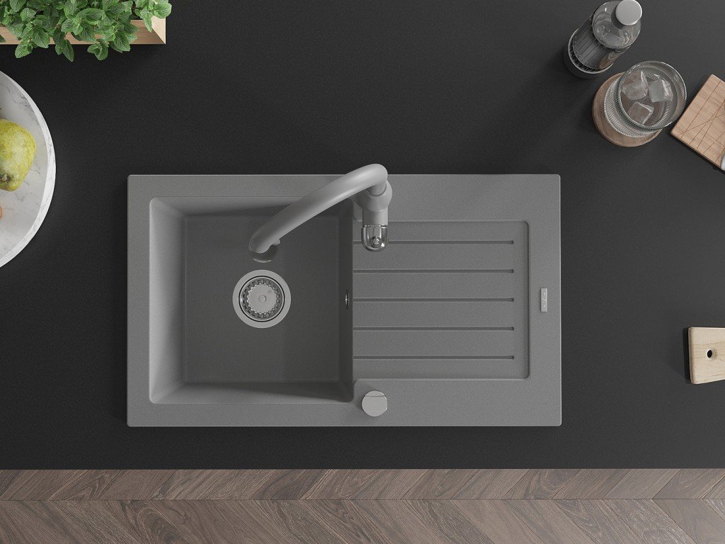 MEXEN/S - Pablo granitový dřez 1 s odkapávačem včetně baterie Savita, šedá 6510-71-672601-71