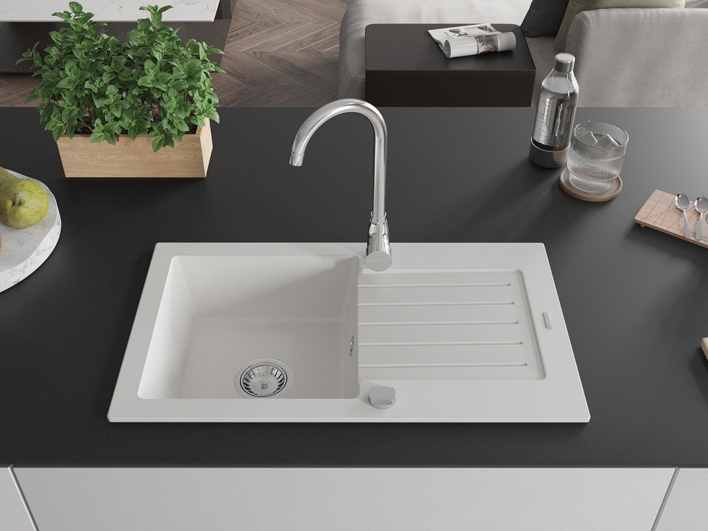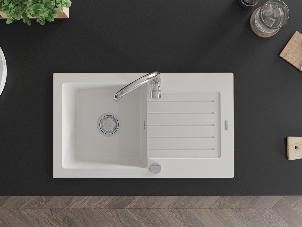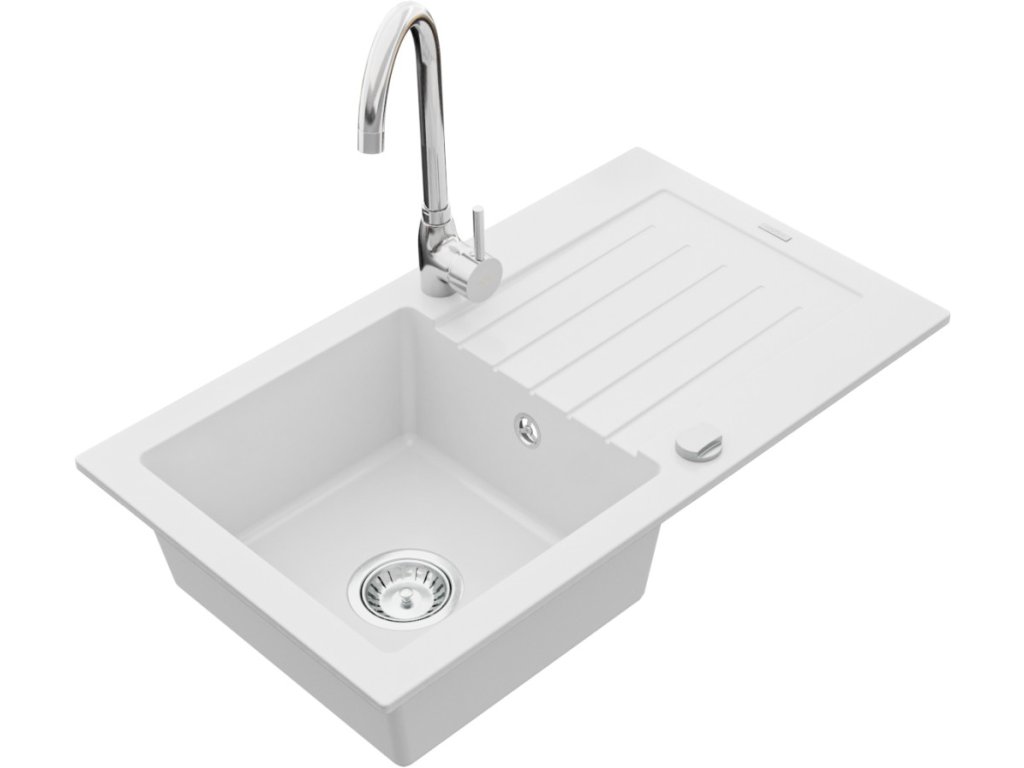 MEXEN/S - Pablo granitový dřez 1 s odkapávačem včetně baterie Telma, bílá 6510-20-670200-00