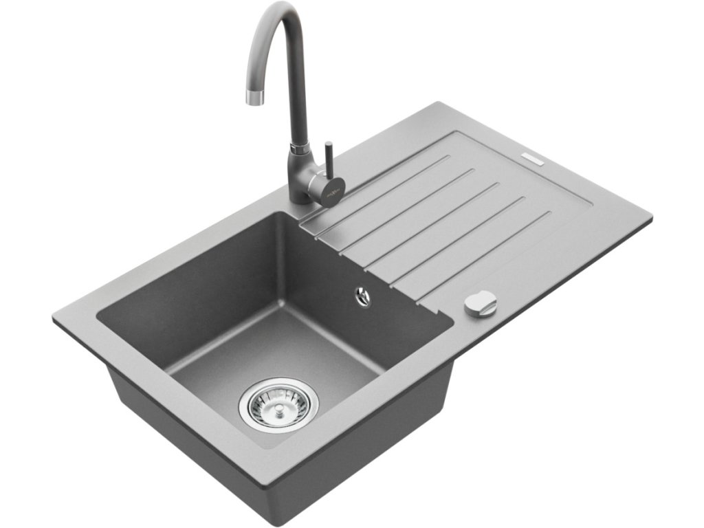 MEXEN/S - Pablo granitový dřez 1 s odkapávačem včetně baterie Telma, šedá 6510-71-670200-71