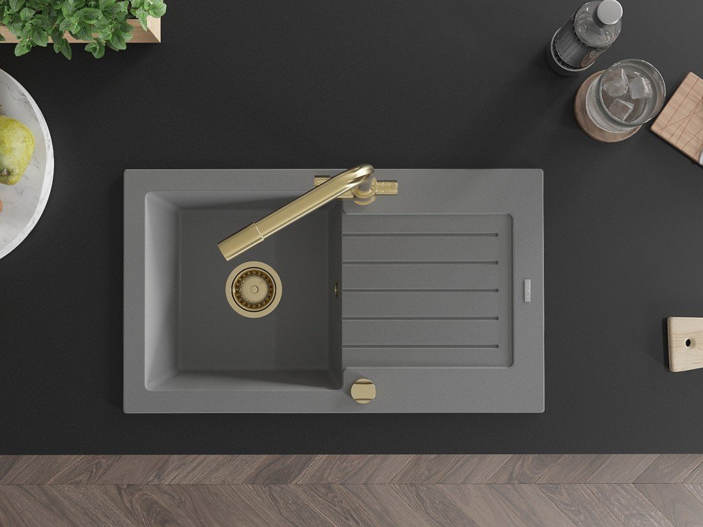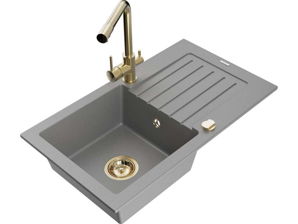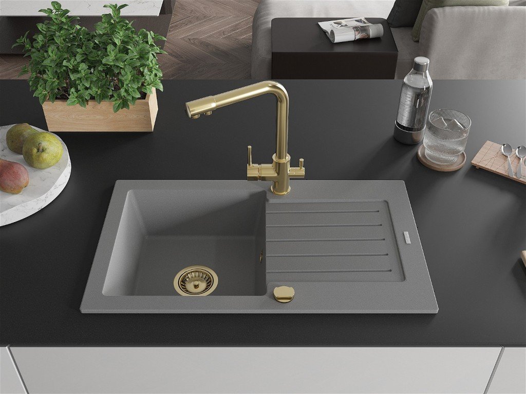 MEXEN/S - Pablo granitový dřez s odkapávačem včetně baterie Duero, šedá 6510-71-671600-50