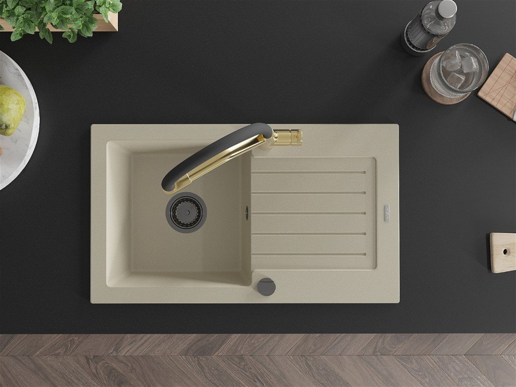 MEXEN/S - Pablo granitový dřez s odkapávačem včetně baterie Duo, béžová 6510-69-671701-57-B