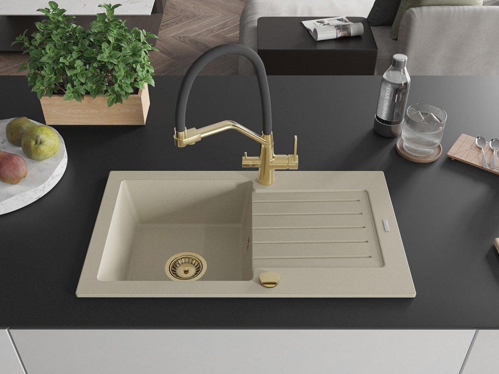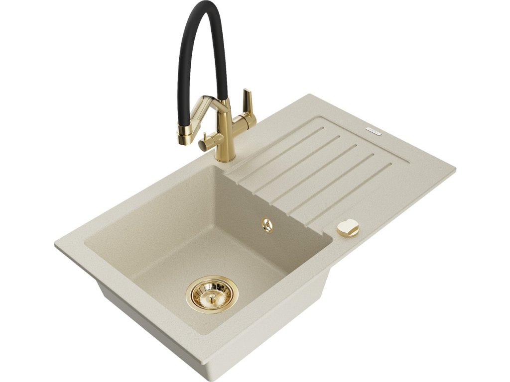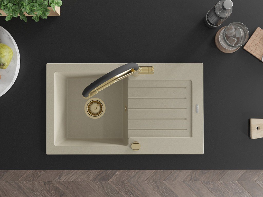 MEXEN/S - Pablo granitový dřez s odkapávačem včetně baterie Duo, béžová 6510-69-671701-57-G