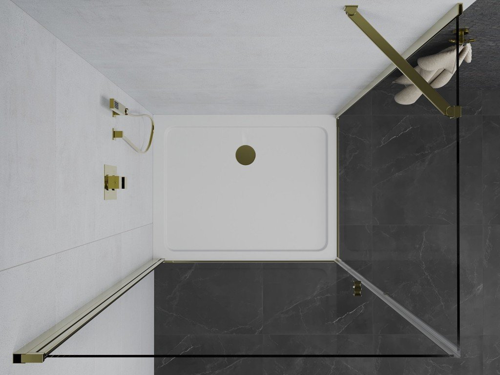 MEXEN/S - Pretoria otevírací sprchový kout 70x80, sklo transparent, zlatá + vanička 852-070-080-50-00-4010