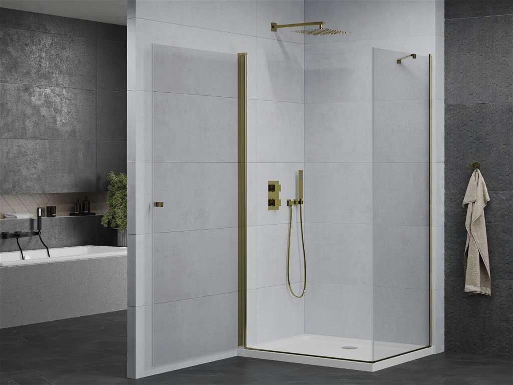 MEXEN/S - Pretoria otevírací sprchový kout 80x90, sklo transparent, zlatý + vanička 852-080-090-50-00-4010