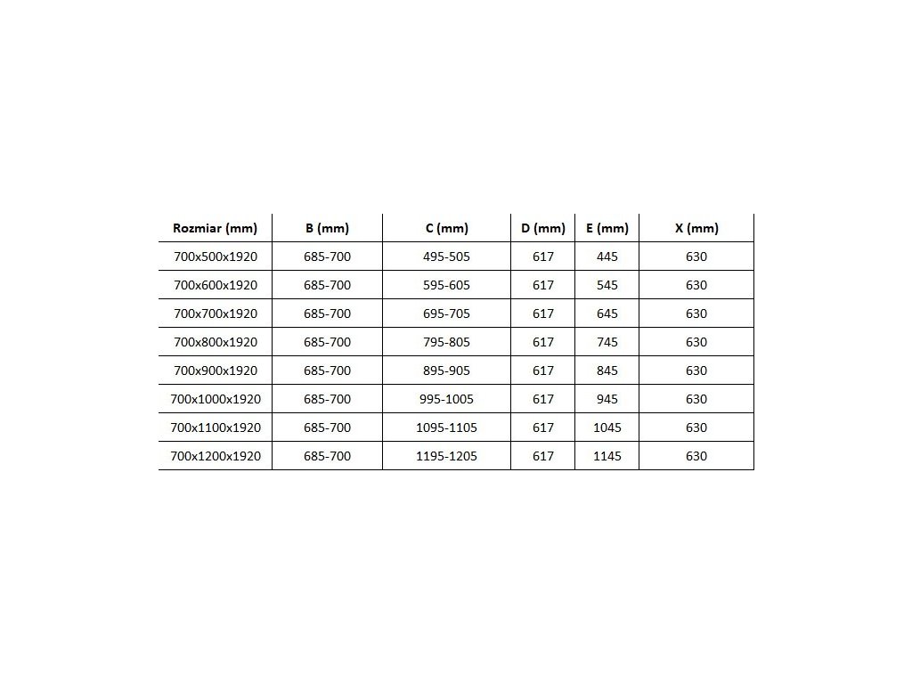 Rozměr: 70x100 cm (dveře 70 cm, stěna 100 cm)